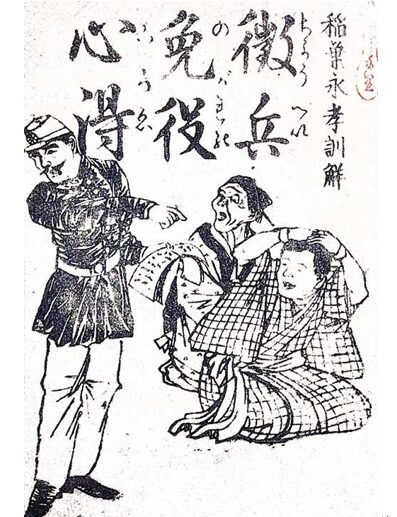 他人の養子となったり、廃家の跡目を継いだり、自分で腕や脚を折ったり傷つけてたり、他の資料では、目に毒を入れたり、犯罪をおかして囚人となったりして徴兵を逃れようとした人々が少なくなかったと書かれている。明治十二年には徴兵を逃れるノウハウ本も出版されという。
