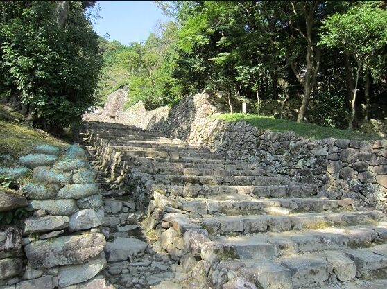 今では石垣が残されているだけなのだが、この城を誰が焼失させたのかについては諸説がある。