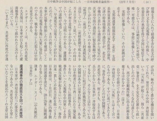冒頭で紹介させていただいた、教科書では盧溝橋事件のあとで日本が次々と大軍を送って戦線を拡大したことが書かれているのだが、わが国が軍隊を増派させた理由については一言も触れられていない。盧溝橋事件からわずか三週間の間に、多くの日本軍人や日本人居留者が多数殺害されているのだが、そのことをしっかりと書いている教科書は皆無であるし、マスコミなどで解説されることもほとんどなかったと思われる。しかしその事実を知らずしてなぜわが国が中国との戦いに巻き込まれたかを語れないと思うのだが、戦前の本ならば大抵書かれている史実がしっかり書かれている本は、戦後の出版物ではわずかしかない。