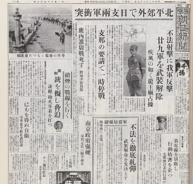 盧溝橋事件を伝える東京朝日新聞 『朝日新聞に見る日本の歩み 昭和12年-14年(破滅への軍国主義1)』p.51