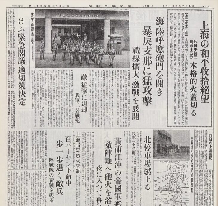 Wikipediaによると一九三七年八月三十日付のニューヨークタイムスでは一連の事件について「日本軍は敵の挑発の下で最大限に抑制した態度を示し、数日の間だけでも全ての日本軍上陸部隊を兵営の中から一歩も出させなかった。ただしそれによって日本人の生命と財産を幾分危険にさらしたのではあるが…」と上海特派員によって報じ、またニューヨーク・ヘラルドトリビューン紙は九月十六日に「中国軍が上海地域で戦闘を無理強いしてきたのは疑う余地は無い」と報じたという。