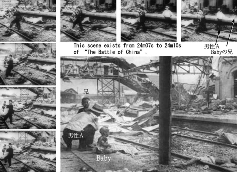 写真雑誌ライフは一九三七年十月四日号に、日本軍が八月二十八日に爆撃した上海南駅でハースト社カメラマンの王小亭が撮影した「上海南駅の赤ん坊」を掲載した。この写真が欧米の反日世論を高めるのに大きな影響を与えたことは有名な話だが。この写真は「中国によるやらせ写真」である可能性が高く、Wikipediaには線路の上に泣いている赤ん坊を運ぶ人物の写真などが紹介されている。