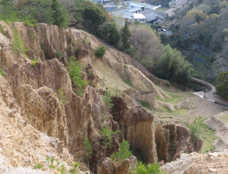 徳島の古刹の桜を楽しんだあと、阿波市阿波町北山・桜ノ岡に存在する阿波の土柱に向かう。