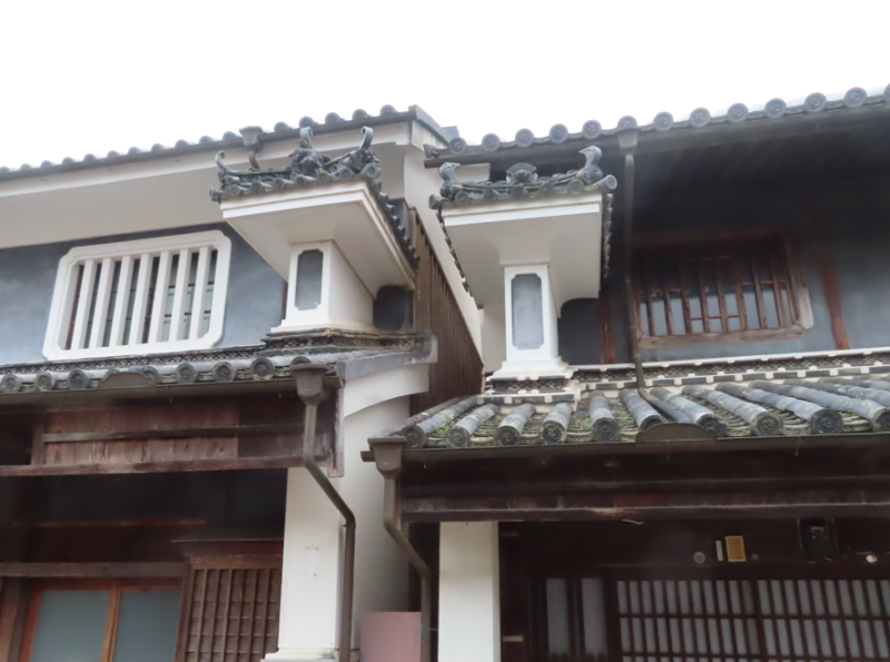 「うだつ(卯建)」というのは、町家の妻壁の横に張り出した袖壁で、防火の役割を果たすものだが、文政十二年に約百七十軒を焼失する大火に襲われた経験から、次第に「うだつ」が作られるようになったという。しかしながら、次第に装飾性が高まっていき設置に多額の費用を要したことから、「うだつ」をあげた立派な家が建てられることが財力のあることを意味するようになっていった。