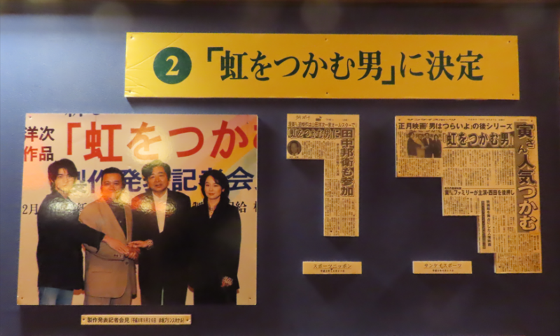 この映画のエピローグで渥美清が登場する場面があり、ラスト近くに「敬愛する渥美清に、この映画を捧げる」とのメッセージが添えられているそうだ。松竹としては『虹をつかむ男』を『男はつらいよ』に続く看板映画としたかったのだが、シリーズは二作で止まってしまったようだ。