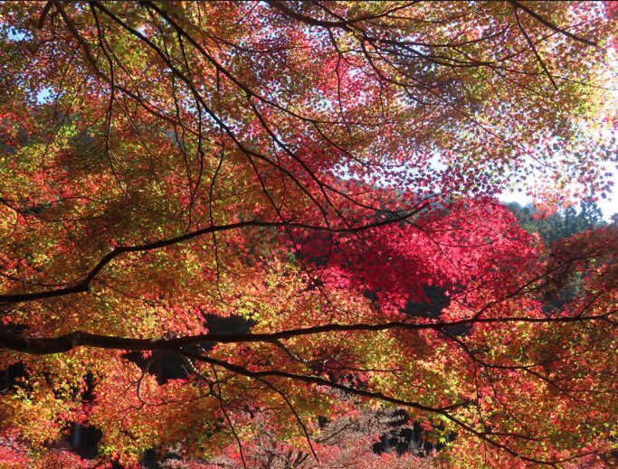 駐車場から本堂までは約七百メートルあり、約六百本の古木のモミジがある。色づきの早いモミジ、遅いモミジがあり、長い期間紅葉を楽しめそうだ。、