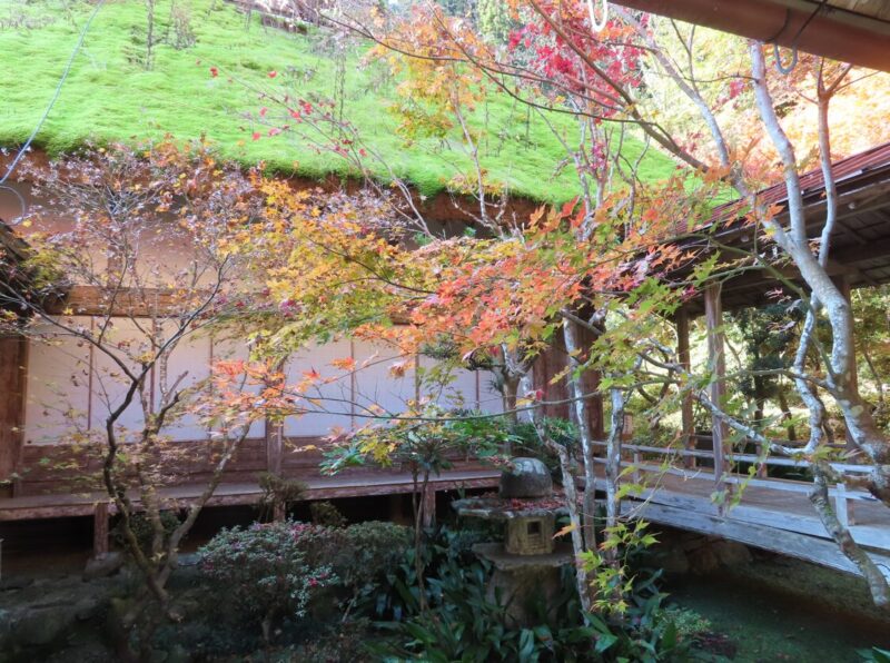 方丈と庫裏の間にある中庭のモミジは残念ながらピークを過ぎたようだった。