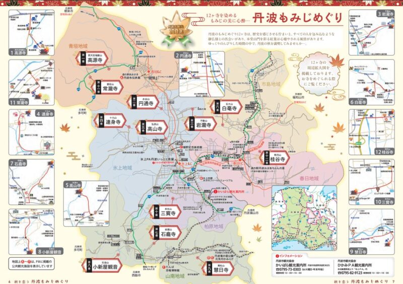 また期間中は地元のボランティアの方が観光客の受付や案内や、地元産品の販売をしていることが多いので安心して楽しむことができる。丹波市のこの取り組みは十年以上続いており、春には桜の名所のパンフレットも制作されている。桜や紅葉名所の古社寺のある他の市町村も真似できないものかと思う。