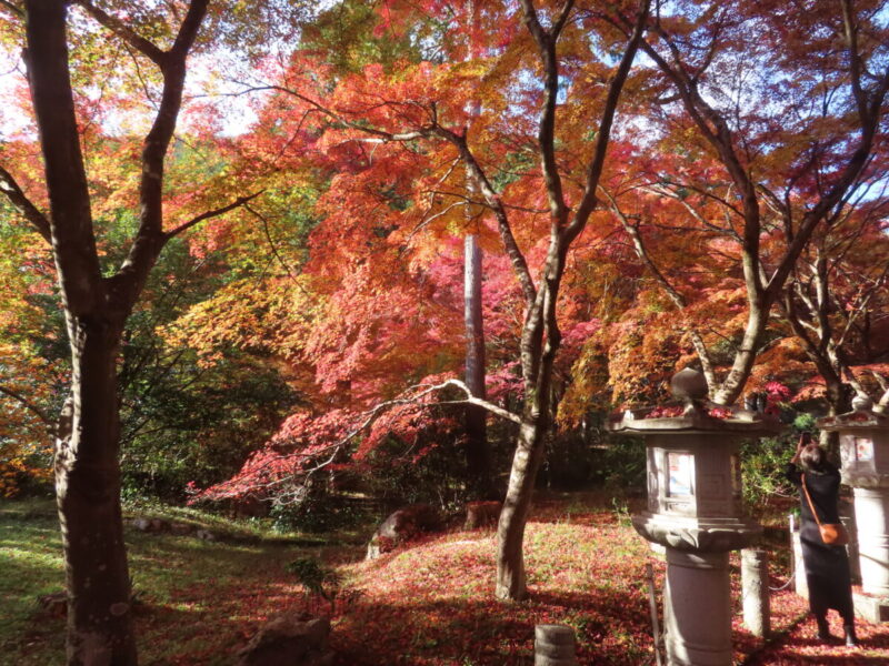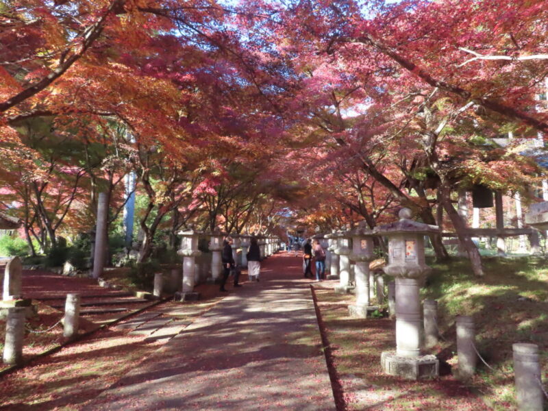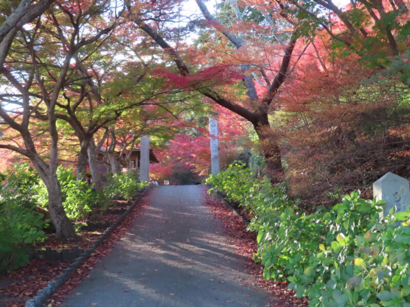 この寺も参道の両脇に多くのモミジが植えられており、トンネルのようになっている。訪問したのは11/20だが、まだ紅く色づいていない枝も多く、もう少し紅葉が楽しめそうだ。