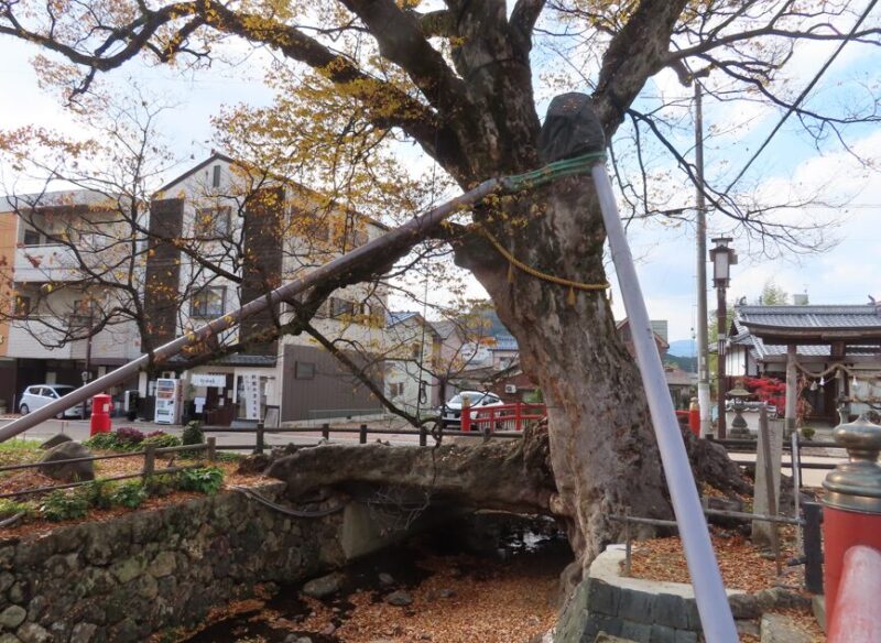 上の画像は兵庫県天然記念物の木の根橋。樹齢千年とも言われる大ケヤキの根が、幅六メートルの奥村川をまたいで橋のようになっている。