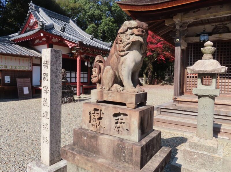 本殿の手前の狛犬一対は柏原の石工・丹波佐吉(村上源信)の代表作とされ、丹波市の文化財に指定されている。